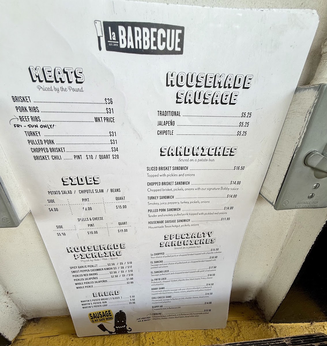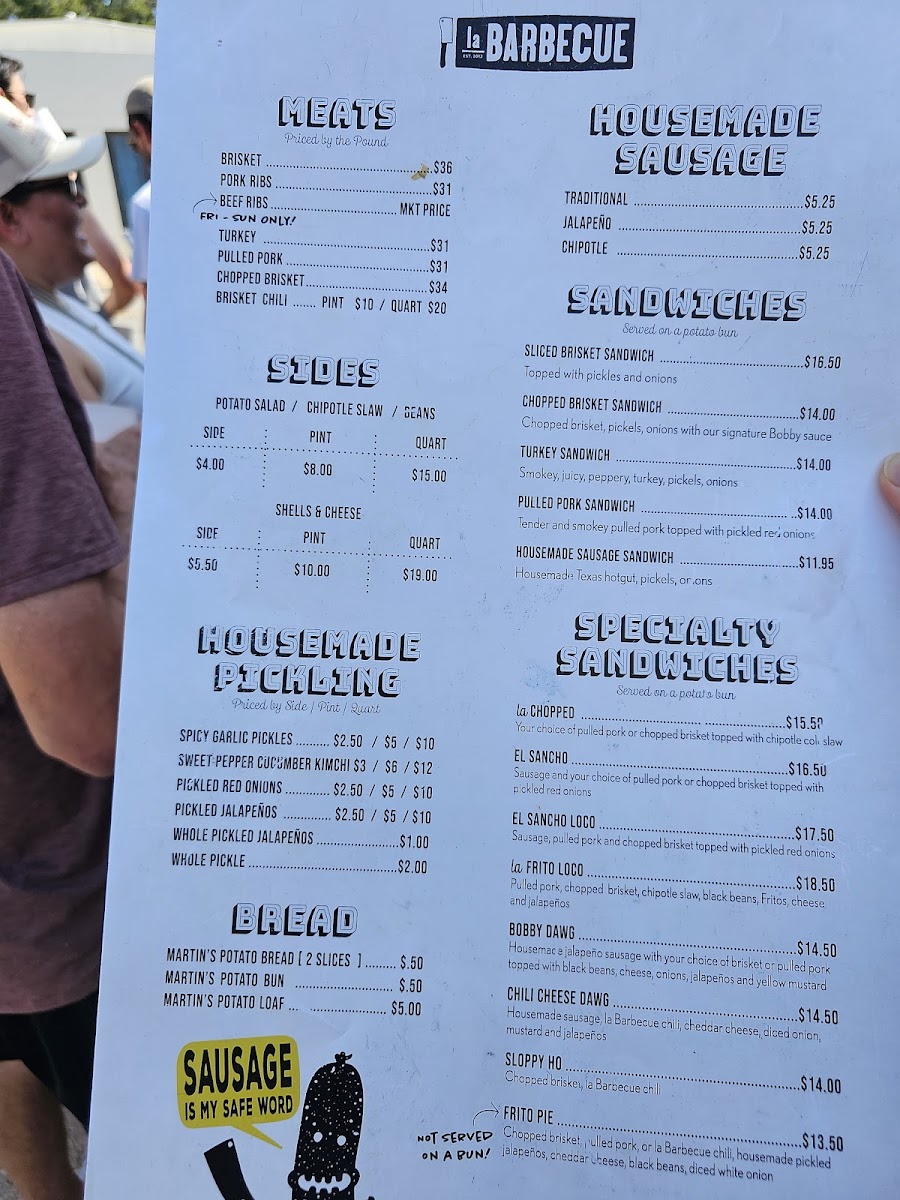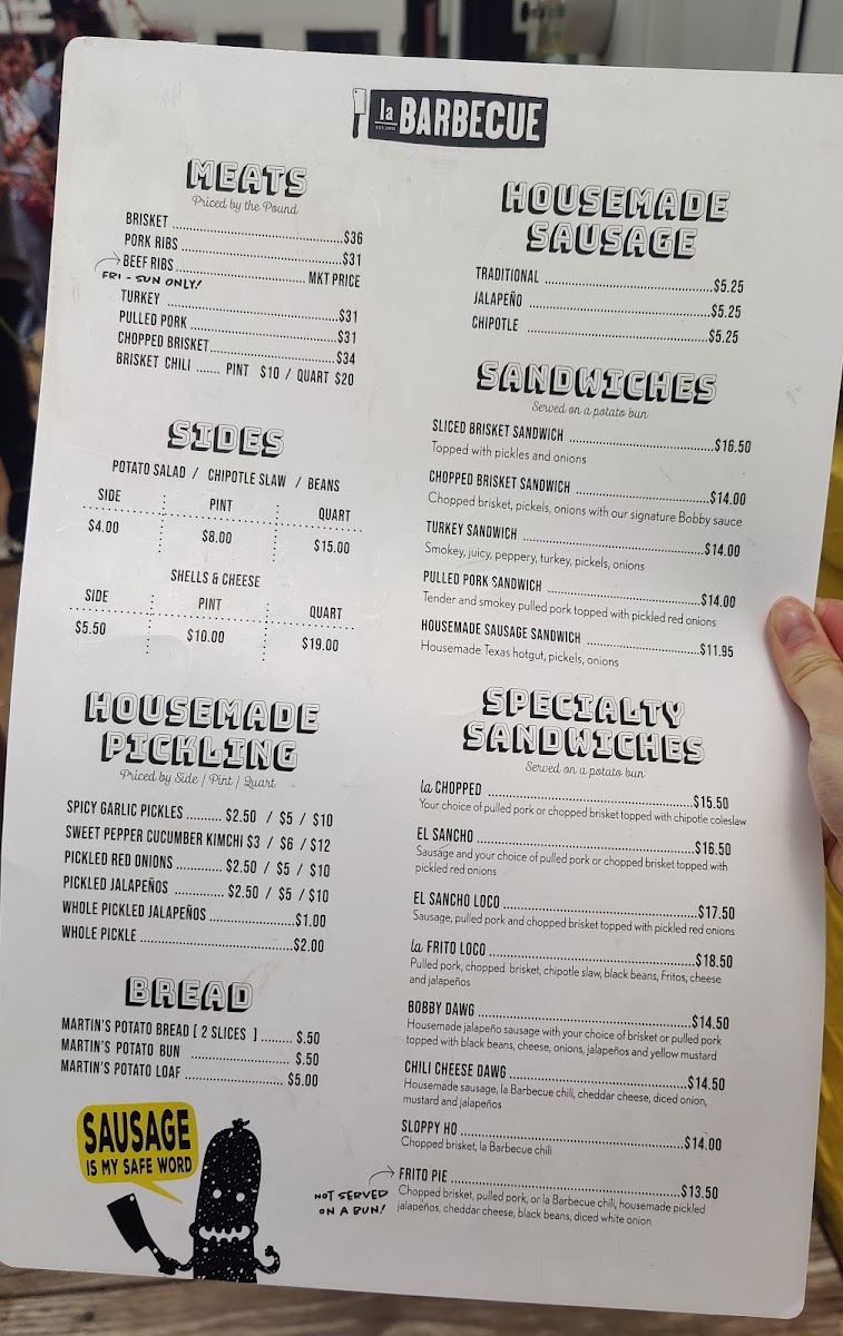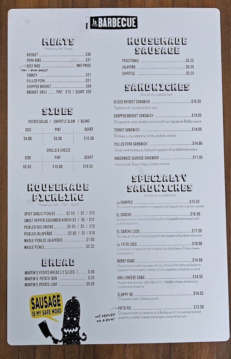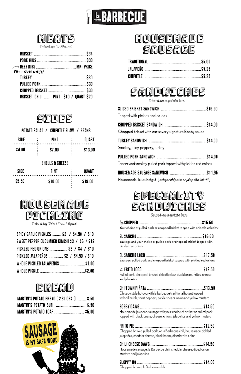 la Barbecue Menu